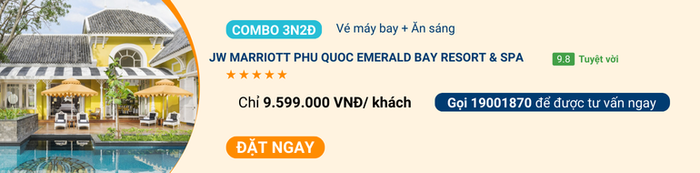 JW Marriott Phú Quốc Emerald Bay Resort & Spa nằm tại bãi Khem xinh đẹp, mang phong cách độc đáo được lấy cảm hứng từ một trường đại học Pháp giả tưởng. Khu nghỉ dưỡng bao gồm 234 phòng, suite và biệt thự, nhiều căn có hồ bơi riêng và ban công hướng biển. Các phòng được thiết kế theo chủ đề các ngành khoa học như sinh học, hóa học, kiến trúc, tạo ra một trải nghiệm nghỉ dưỡng khác biệt và thú vị.