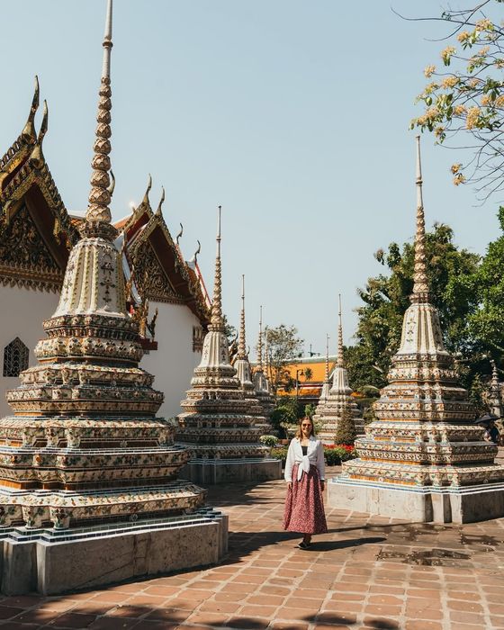 Wat Pho được biết đến rộng rãi nhờ bức tượng Đức Phật nằm ngoạn mục dài 46m được phủ bằng vàng lá. Là ngôi đền lâu đời nhất ở thủ đô, nơi này còn được xem là trung tâm khai sinh của nghệ thuật massage Thái Lan cổ truyền. Đến thăm Wat Pho, du khách không chỉ được chiêm ngưỡng bức tượng Phật đồ sộ mà còn có cơ hội trải nghiệm các liệu pháp massage thư giãn đặc trưng.