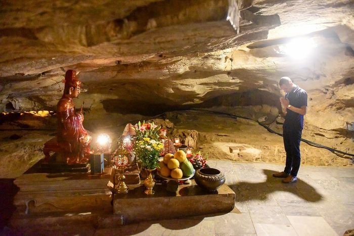 Hang Sáng là một hang động tự nhiên, được xem như chính điện của chùa cổ, nơi thờ Phật và các vị thần linh. Với không gian rộng rãi và ánh sáng tự nhiên lọt qua cửa hang, nơi đây trở thành điểm đến linh thiêng. Các bức tượng Phật được đặt trang trọng, hòa quyện với vẻ đẹp tự nhiên của đá vôi và cây cỏ.