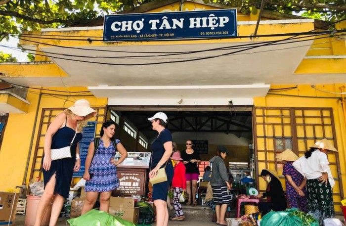 Chợ Tân Hiệp là nơi giao lưu và buôn bán chủ yếu của người dân trên đảo Cù Lao Chàm. Nằm ngay Bãi Làng, trung tâm hành chính của xã Tân Hiệp, chợ không chỉ bày bán các mặt hàng thông thường mà còn rất đa dạng hải sản tươi sống. Đặc biệt, chợ có khu vực chế biến hải sản tại chỗ, bạn có thể mua hải sản và yêu cầu người bán nướng, hấp, hoặc luộc ngay. Chỉ khoảng 10 - 15 phút sau, bạn đã có món ăn nóng hổi để thưởng thức ngay tại chợ.