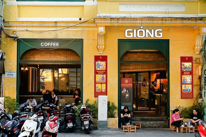 Cách nhà thờ Đức Bà chỉ khoảng 30 m trên đường Nguyễn Du, cà phê Gióng nằm đối diện khu trung tâm. Quán có thiết kế tối giản với tông gỗ sáng, mang lại cảm giác nhẹ nhàng, hiện đại và rất thư giãn.