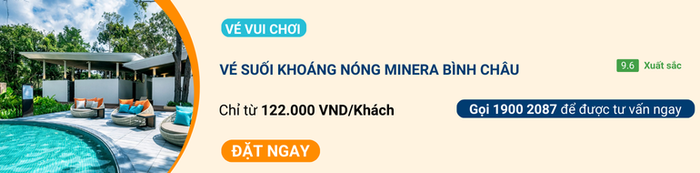 Suối khoáng nóng Minera Bình Châu mang đến nguồn nước khoáng thiên nhiên dồi dào, rất tốt cho sức khỏe. Du khách có thể trải nghiệm những dịch vụ độc đáo như tắm Onsen kiểu Nhật, ngâm khoáng, tắm bùn, trị liệu… Bên cạnh đó, còn có dịch vụ luộc trứng bằng nước khoáng và ủ trứng bằng bùn khoáng đặc biệt.