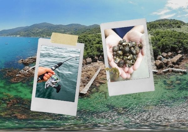 Khi thủy triều rút, bạn có thể tự mình bắt ốc vú nàng, ốc nón bám chặt trên các kẽ đá. Cảm giác được thưởng thức những con ốc do chính tay mình bắt sẽ mang đến một trải nghiệm vô cùng thú vị.