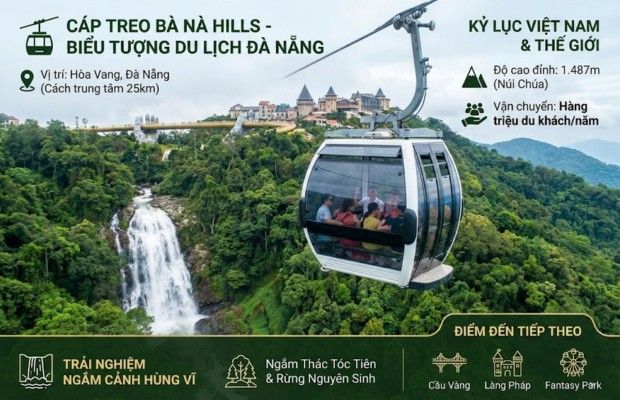 Không còn phải băng qua những cung đường đèo dốc hiểm trở, giờ đây, du khách có thể ngồi thư giãn trong cabin kính, chiêm ngưỡng thác Tóc Tiên tung bọt trắng xóa và những cánh rừng nguyên sinh bạt ngàn. Đây là khởi đầu lý tưởng để bạn khám phá các địa điểm du lịch Đà Nẵng nổi tiếng như Cầu Vàng, Làng Pháp, và Fantasy Park.