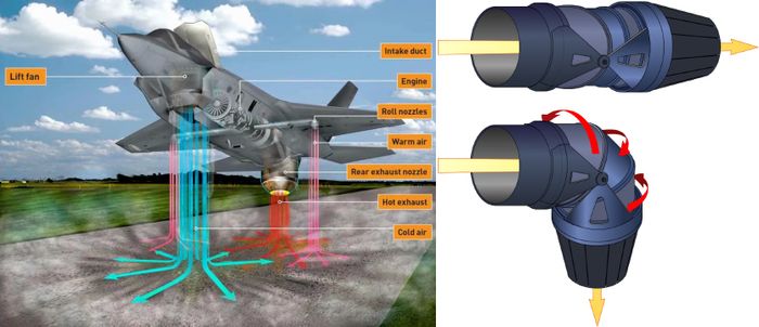 Chiến đấu cơ này được trang bị các bộ phận đặc biệt như Quạt nâng (LiftFan) và động cơ Pratt & Whitney F135-PW-600, giúp F-35B có thể thực hiện thao tác này, khác biệt so với các phiên bản F-35A và F-35C sử dụng động cơ F135-PW-100/400.