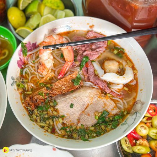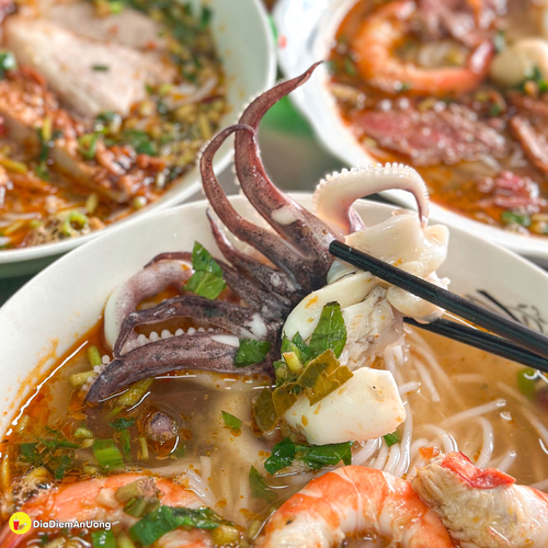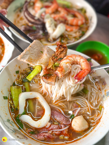 Tại đây, bạn có thể chọn bún hoặc mì, tất cả nguyên liệu đều tươi ngon, không dùng đồ đông lạnh, đảm bảo chất lượng. Rau ăn kèm cũng là điểm đặc biệt, rau nhút, rau muống, kèo nèo tươi xanh, sạch sẽ được cho vào tô ăn cùng, rất ngon và hấp dẫn.