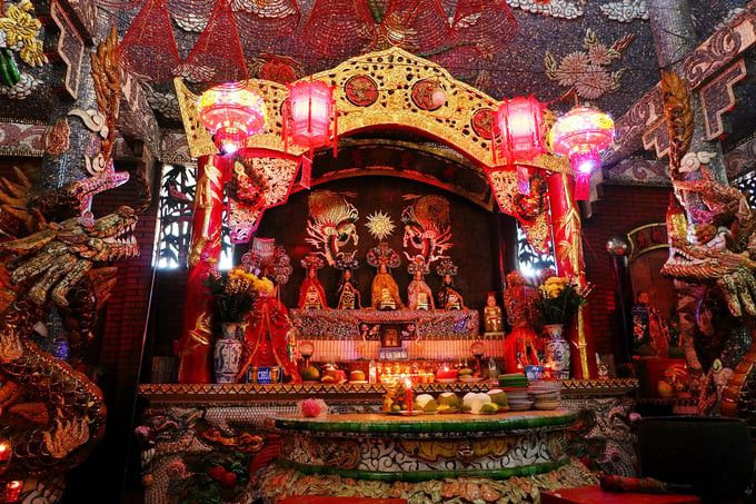 Không gian bên trong miếu được sắp đặt hài hòa, ngăn nắp, đậm nét tín ngưỡng dân gian Nam Bộ. Từng chi tiết trang trí không chỉ tạo nên vẻ đẹp thẩm mỹ mà còn gửi gắm niềm tin, khát vọng về bình an và may mắn.