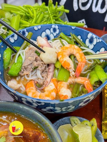 Nước dùng Bún Thái đậm đà, ngay cả em bé cũng có thể ăn được nha. Mấy món hải sản tươi ngon thì mấy bồ chấm cùng muối ớt xanh thì tuyệt vời.