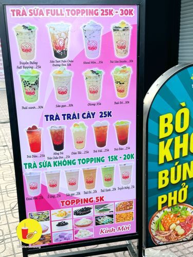 Cuối cùng là kết thúc bằng những ly trà sữa mát lạnh. Các bạn có thể thử những món đang gây sốt như Trà Sữa Khoai Môn với nhiều topping hấp dẫn, hay Sữa Gạo béo ngậy, cũng có thể chọn ly Nước Dừa kết hợp với các loại thạch cũng rất tuyệt vời.