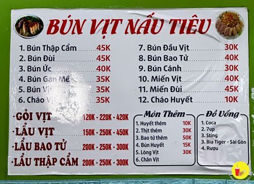 📍 Quán Bún Vịt Nấu Tiêu Nhân Duyên.