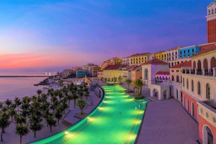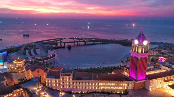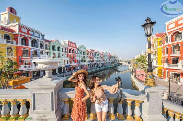 Sunset Town, hay còn gọi là Thị Trấn Hoàng Hôn, là một dự án của chủ đầu tư Sun Group, nổi bật với kiến trúc Địa Trung Hải độc đáo. Tọa lạc trên triền đồi phía Tây Nam đảo Phú Quốc, nơi đây được xem là một trong những vị trí lý tưởng nhất để ngắm hoàng hôn tại Việt Nam. Du khách sẽ có cơ hội chiêm ngưỡng cảnh sắc hoàng hôn tuyệt đẹp, nơi ánh nắng mặt trời hòa quyện với những gam màu như tím, đỏ, cam và hồng, tạo nên một bức tranh thiên nhiên tuyệt mỹ khi mặt trời dần lặn xuống đại dương.