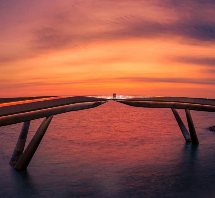 Với hai bờ đất vươn ra biển cả, Cầu Hôn mang lại một trải nghiệm tuyệt vời, nơi mà đôi tình nhân có thể trao nhau nụ hôn lãng mạn dưới ánh hoàng hôn. Ngoài việc chiêm ngưỡng cảnh sắc hoàng hôn đẹp mắt, du khách còn có thể tận hưởng nhiều dịch vụ khác nhau, gồm bể bơi, nhà hàng, và những chương trình biểu diễn công nghệ vortex.