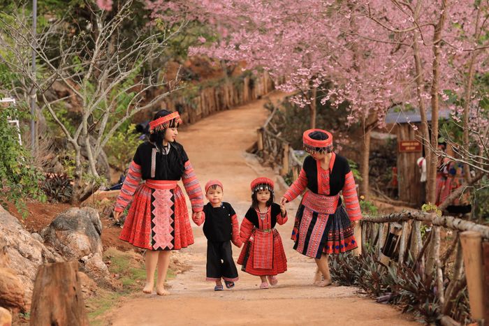 Ở những bản làng chìm trong làn sương sớm, sắc hoa mai anh đào tô điểm cho những ngôi nhà trình tường cổ kính, mang đến vẻ đẹp trầm lặng nhưng rất lãng mạn. Dinh thự họ Vương, làng Lô Lô Chải, xã Mèo Vạc hiện lên với diện mạo mới, đưa du khách vào một mùa Tết bình yên, chậm rãi nơi miền biên viễn.