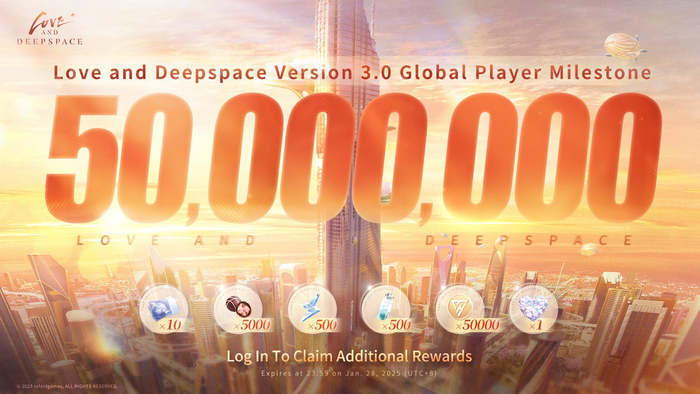 Theo thông tin mới nhất, vào giữa tháng 1 vừa qua, Love and Deepspace đã chính thức đạt mốc 50 triệu người chơi trên toàn cầu. Đây là một cột mốc kỷ lục mà trò chơi đạt được, đồng thời cũng là thành tích đáng ngưỡng mộ mà nhiều tựa game khác mơ ước.