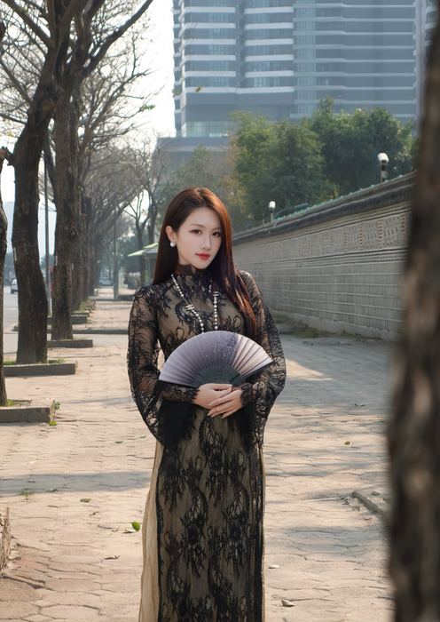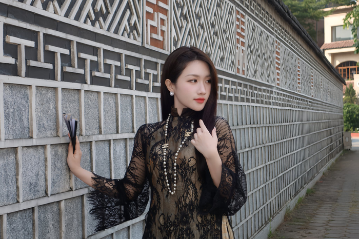Điểm đặc biệt của bộ ảnh nằm ở bối cảnh chụp, trên con đường vắng vẻ, hàng cây trụi lá cuối mùa đông, và bức tường hoa văn cổ điển... tất cả tạo nên một phông nền rất Tết, rất Hà Nội, mang đậm màu sắc hoài niệm. Sự kết hợp giữa không gian truyền thống và hình ảnh áo dài tạo nên một tổng thể hài hòa, đậm đà sắc xuân, mang đến cảm giác bình yên, chậm rãi đúng với tinh thần của những ngày cuối năm.