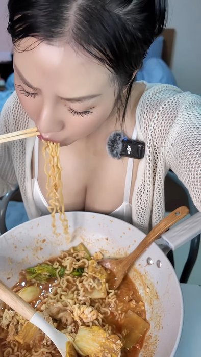 Tuy nhiên, nếu biết cách khai thác đúng điểm mạnh và chọn góc quay phù hợp, một video mukbang có thể gây bão và thu hút lượt xem không ngờ. Mới đây, một hot girl xinh đẹp đã khiến cộng đồng mạng phải xôn xao khi đăng tải một video mukbang cực kỳ đơn giản: cô chỉ ăn mì tôm, quay lại cảnh chế biến và thưởng thức, nhưng lại thu hút hơn 1 triệu lượt xem chỉ trong vài giờ đồng hồ.
