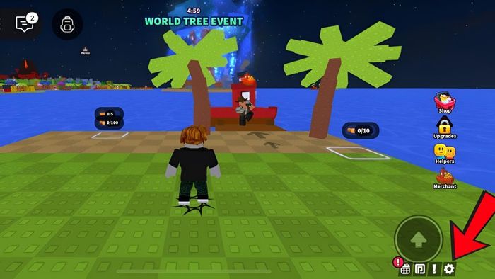 - Bước 1: Truy cập game Build An Island trên Roblox. Nhấn biểu tượng Cài đặt (Settings) ở góc dưới bên phải màn hình