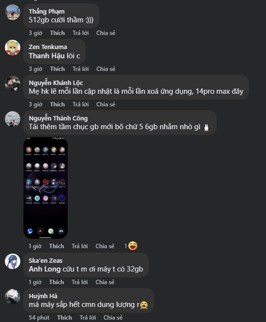 Trên các diễn đàn và mạng xã hội, cộng đồng Tốc Chiến Việt Nam nhanh chóng phân hóa thành nhiều luồng ý kiến trái ngược. Một bộ phận game thủ sở hữu thiết bị cao cấp với dung lượng lưu trữ rộng rãi tỏ ra rất thoải mái với con số 5 - 6GB. Nhiều bình luận hài hước xuất hiện như “512GB thì không phải nghĩ”, “tải tẹt ga” hay “thêm vài chục GB nữa cũng không sao”.