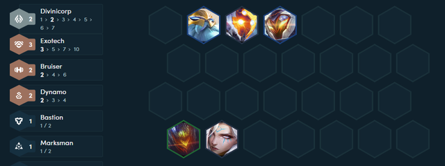 Điều quan trọng nhất khi bắt đầu trận đấu là game thủ cần kiểm tra trang bị Siêu Công Nghệ có trong ván đấu. Nếu có Cung Số 3 Chiều và Nanh Vuốt Phấn Khích, game thủ có thể xây dựng đội hình Vex - Thần Pháp, với Varus là chủ lực sử dụng tốt cả hai món đồ này. Tiếp theo, người chơi cần ưu tiên mua các đơn vị Công Nghệ Cao như Jax, Jhin kết hợp cùng Morgana để đảm bảo cả sát thương và khả năng chống chịu. Nếu may mắn, Mordekaiser và Gragas sẽ là những bổ sung mạnh mẽ ở cấp 5 để kích hoạt mốc 3 Công Nghệ Cao cực kỳ quan trọng.