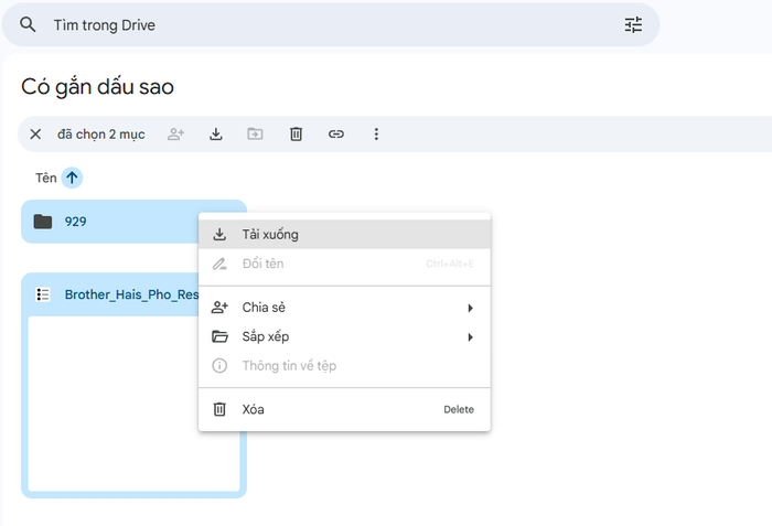 - Chọn cả hai file (file game và file bạn vừa thêm), sau đó nhấn chuột phải → Chọn Tải xuống. Google Drive sẽ tự động nén hai file này thành một tệp .zip (do tài khoản Google của bạn tạo).