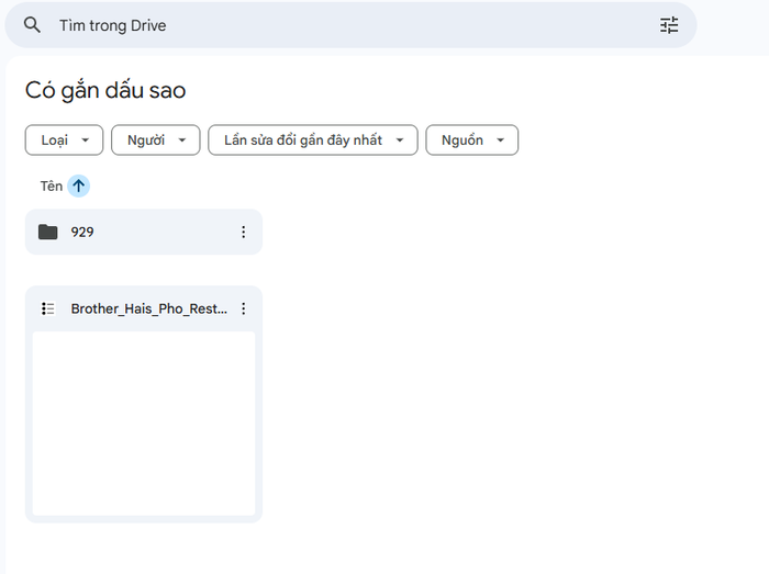 - Trở lại trang chủ Google Drive, vào mục Có gắn dấu sao (Starred).