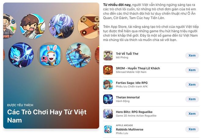 Apple đã vinh danh các sản phẩm từ các nhà phát triển game Việt Nam.