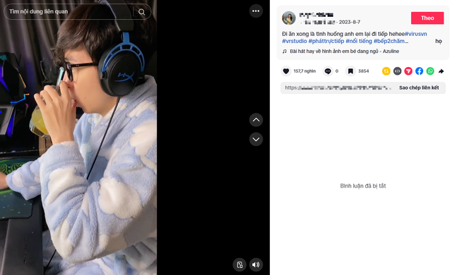 Hiện tại, video đã bị cô nàng khóa phần bình luận. Tuy nhiên, dân tình vẫn không ngừng đổ xô vào trang cá nhân của cô, để lại nhiều ý kiến ẩn ý dưới các video khác, phần lớn liên quan đến buổi livestream của Ngọc Kem tối qua – đặc biệt là chi tiết về việc "đồ riêng tư của con gái" xuất hiện tại nhà ViruSs. Đến nay, nữ trợ lý vẫn chưa lên tiếng giữa cơn bão drama.