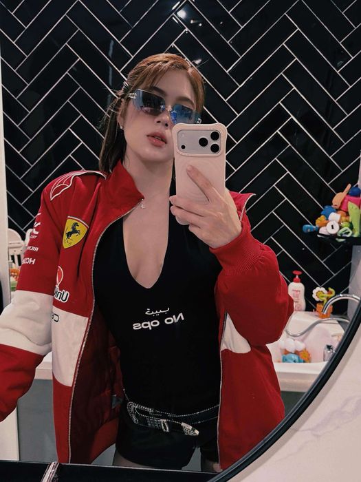 Dù lên đồ "chiến", Trân Mèo vẫn giữ vững sức hút khó cưỡng. Cô nàng tinh tế phối cùng kính mát độc đáo, mái tóc xoăn nhẹ và lớp trang điểm tôn lên đôi môi quyến rũ, tạo nên một tổng thể cực kỳ ấn tượng, vừa chất lại vừa sexy, hoàn hảo cho bầu không khí sôi động của đêm nhạc.