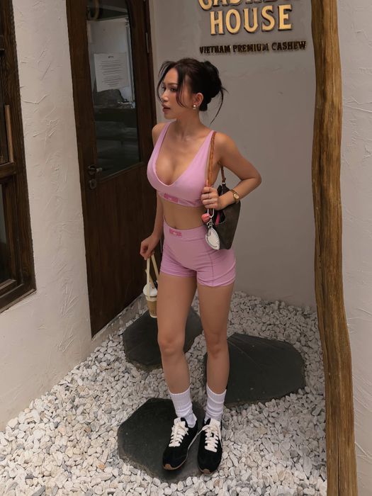 Gần đây, một người đẹp khiến fan nam 'dậy sóng' khi xuất hiện đầy tự tin trong bộ đồ tập màu hồng rực rỡ, khoe trọn vóc dáng hoàn hảo từ phòng gym đến quán cà phê