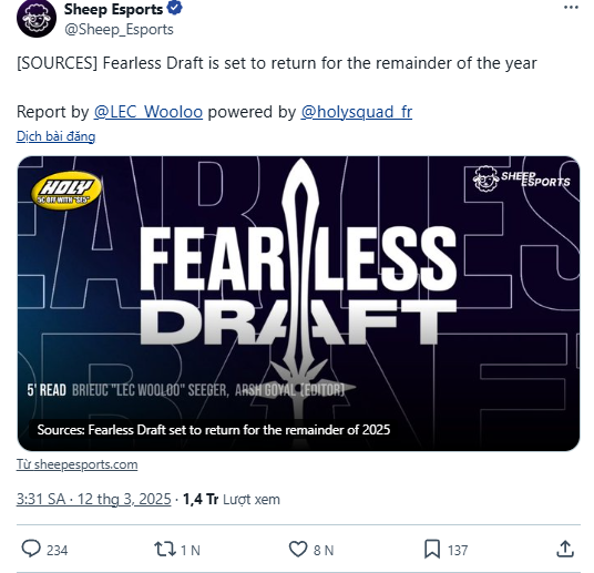 Như đã đề cập, hiện tại Riot đang quyết tâm loại bỏ lối chơi đảo đường gây nhiều tranh cãi, vốn được lặp lại từ MSI 2024 đến nay. Dù đã giành chức vô địch với meta này, nhưng lối chơi đảo đường vẫn gây ra không ít khó khăn cho T1 và các đội khác, đặc biệt là trong khâu cấm chọn. Đáng chú ý, thông tin mới đây cho thấy Riot có thể sẽ tiếp tục áp dụng Fearless Draft trong phần còn lại của mùa giải 2025.