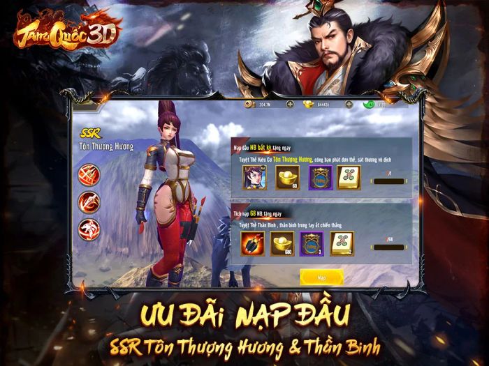 Khi chính thức gia nhập thế giới Tam Quốc, nạp đầu tiên tại bất kỳ mốc nạp nào sẽ nhận ngay phần quà cực kỳ hấp dẫn, bao gồm: