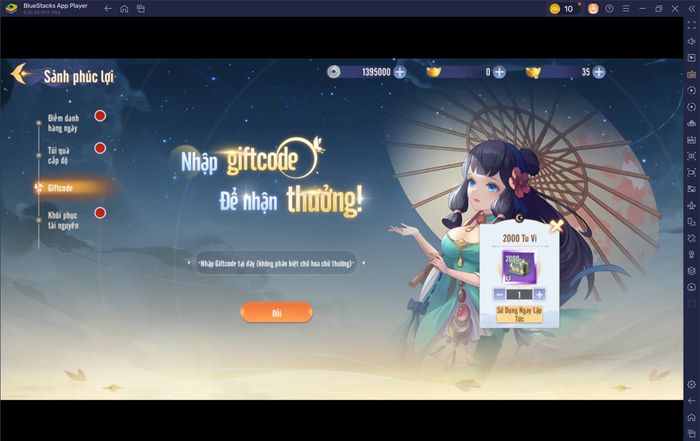 - Bước 3: Nhập giftcode vào ô trống → nhấn Đổi để xác nhận.