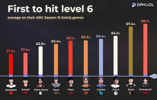 Theo BXH của DPM, Smash, người thay thế Gumayusi trong giai đoạn LCK Cup 2025 và đầu mùa giải Regular Seasons 2025, chỉ có tỷ lệ 57,4% số trận lên cấp 6 trước đối thủ. Lý do là mỗi khi Smash thi đấu, anh cần sự hỗ trợ từ Hỗ Trợ để giành chiến thắng đường.