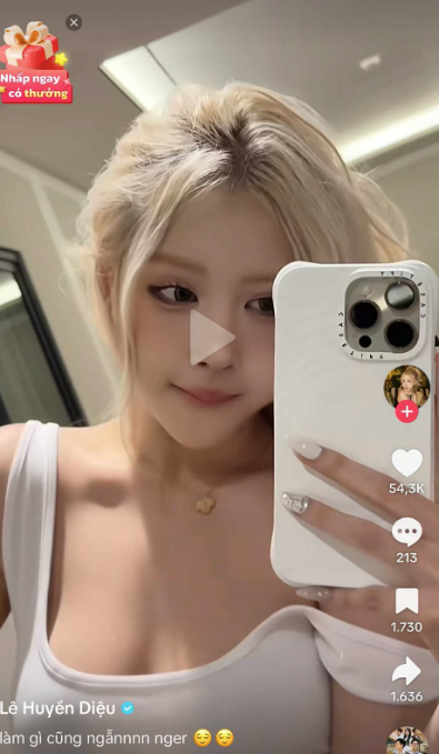 Ít ai ngờ rằng, bí quyết giúp Lê Huyền Diệu làm nổi bật vẻ đẹp và thần thái của mình không phải là những bối cảnh xa hoa, mà là một góc quay quen thuộc trước gương. Góc máy này không chỉ giúp cô khoe trọn vóc dáng gợi cảm, mà còn tạo ra một phong cách đặc trưng. Hai video nổi bật ghim trên kênh của cô đều thu hút hàng triệu lượt xem.