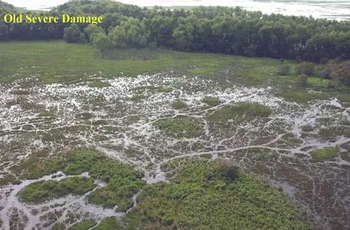 So với thảm thực vật bị tàn phá bởi Nutria xung quanh.