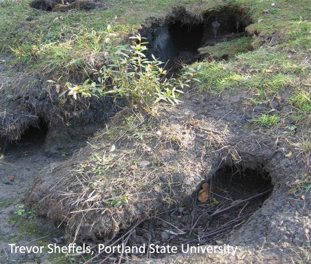 Tương tự, tại đồng bằng Sacramento-San Joaquin ở California, từ năm 2018, chuột Nutria đã phá hủy 25% thảm thực vật ven đê, làm suy yếu môi trường sống của các loài cá bản địa như cá hồi Chinook (Oncorhynchus tshawytscha), vốn đã giảm 80% quần thể từ năm 1980.