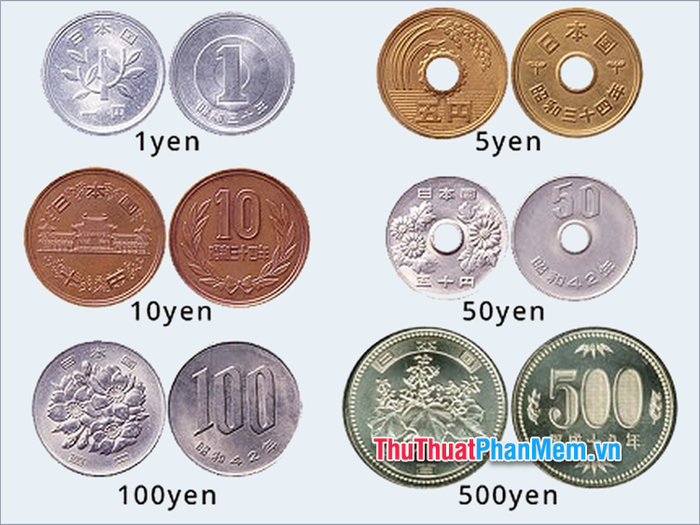 Tiền xu Nhật Bản được chế tạo chủ yếu từ đồng hoặc niken. Tiền xu thường được sử dụng trong các giao dịch nhỏ như gọi điện thoại công cộng, đi xe buýt, mua hàng tự động, hoặc trả lại khi mua sắm tại siêu thị. Các mệnh giá tiền xu phổ biến của Nhật gồm 1 Yên, 5 Yên, 10 Yên, 50 Yên, 100 Yên và 500 Yên.