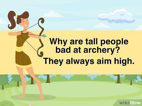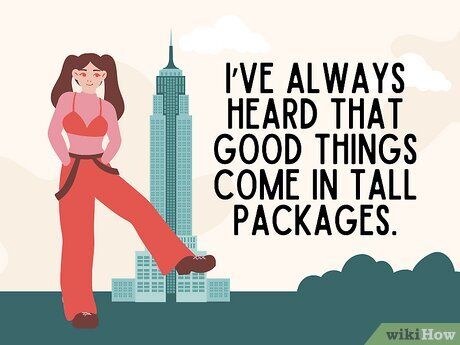 Chuyển sang một câu chuyện cười quen thuộc về người cao để khiến họ cười ngặt nghẽo. Một người anh em của những câu chuyện cười ‘Yo mama’, những câu chuyện kiểu ‘bạn cao quá…’ là những câu đùa nhẹ nhàng không hề có ý xúc phạm thật sự. Chúng chủ yếu là về trò cười hơn là việc chế giễu ai đó. Trên thực tế, những câu đùa kiểu này thường tạo ra một cuộc chiến tranh cười. Dưới đây là một số ví dụ về những câu chuyện cười kiểu ‘bạn cao quá…’ để giúp bạn thực hiện cú tấn công đầu tiên: