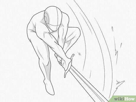 - Vẽ những đường tác động nhỏ xung quanh vệt cắt để thể hiện sức mạnh của cú vung kiếm.