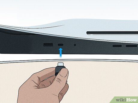 Cắm bộ phát Bluetooth vào PS5. Đảm bảo rằng bạn cắm bộ phát vào đúng loại cổng. Hầu hết các bộ phát sử dụng cổng USB-C, vì vậy bạn cần cắm vào cổng USB-C ở phía trước của hệ máy PS5.