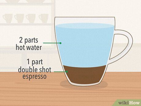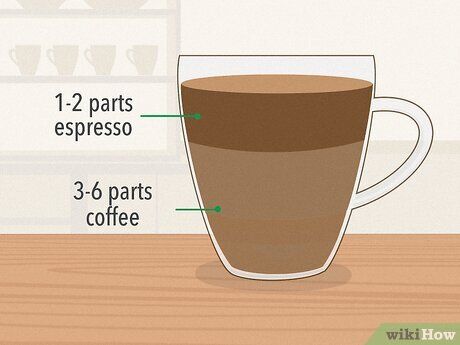- Tỷ lệ: 1–2 phần espresso, 3–6 phần cà phê