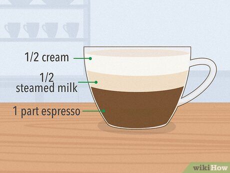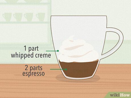 - Tỷ lệ: 1 phần espresso (thường là 1 shot), 1 phần hỗn hợp sữa và kem
