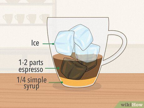 - Tỷ lệ: 1 shot espresso kép, đá, 1/4 phần siro đơn giản