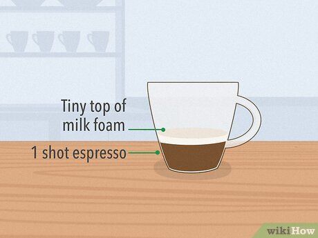 - Tỷ lệ: 1 shot espresso, một chút bọt sữa trên cùng