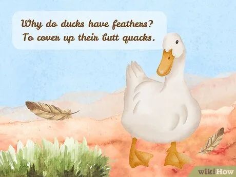 Kể một câu đùa ngớ ngẩn dành cho trẻ em để khiến những chú vịt nhỏ cười khúc khích. Chia sẻ những câu đùa với trẻ em là cách tuyệt vời để giúp chúng phát triển kỹ năng giao tiếp và óc hài hước. Hãy kể một trong những câu đùa ngớ ngẩn về vịt này cho những chú vịt con yêu thích của bạn để khiến chúng cười vui: