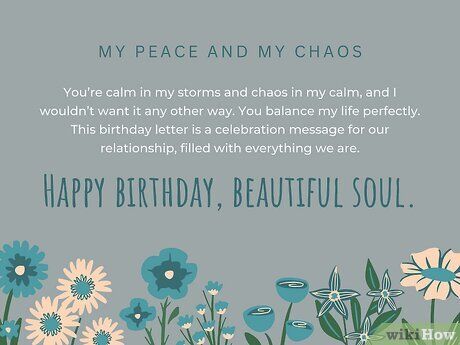 Yên Bình và Hỗn Loạn Của TôiAnh là sự bình yên trong những cơn bão của tôi, và là hỗn loạn trong những lúc bình lặng của tôi, và tôi không muốn có nó theo cách nào khác. Anh là sự cân bằng hoàn hảo trong cuộc sống của tôi. Lá thư sinh nhật này là một thông điệp ăn mừng mối quan hệ của chúng ta, chứa đựng tất cả những gì chúng ta là. Chúc mừng sinh nhật, linh hồn tuyệt vời của tôi.
