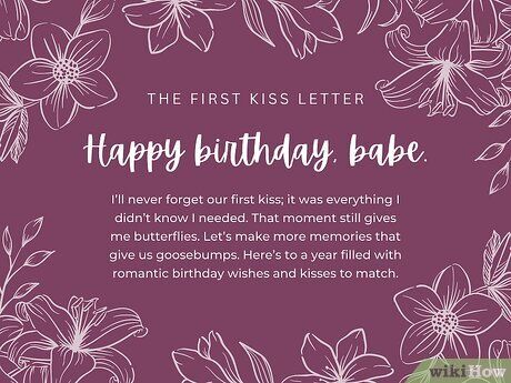 Lá Thư Của Nụ Hôn ĐầuChúc mừng sinh nhật, em yêu. Anh sẽ không bao giờ quên nụ hôn đầu tiên của chúng ta; nó là tất cả những gì anh không biết mình cần. Khoảnh khắc đó vẫn khiến tim anh rộn ràng. Hãy tạo thêm những kỷ niệm khiến chúng ta rưng rưng cảm xúc. Chúc một năm tràn ngập những lời chúc sinh nhật lãng mạn và những nụ hôn ngọt ngào đi kèm.