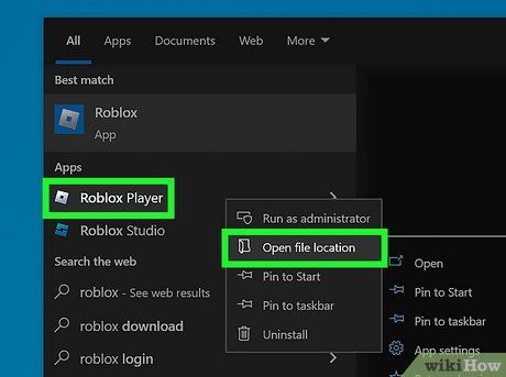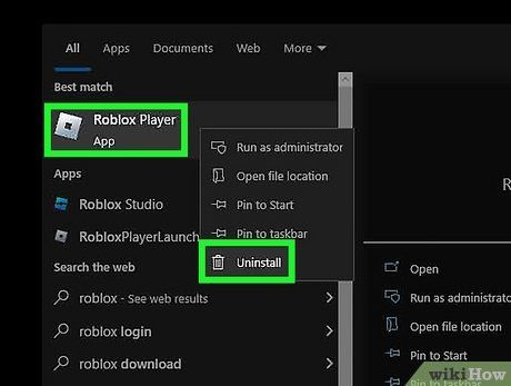 - Nhấp vào menu Start của Windows và nhập "Roblox".