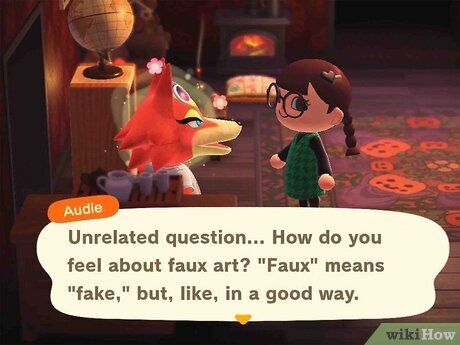 Trang trí Nhiều người chơi ACNH cuối cùng sử dụng các bức tranh và tượng giả làm đồ trang trí, mặc dù chúng không phải là đồ thật. Trong một chủ đề trên Reddit thảo luận về việc làm gì với tác phẩm nghệ thuật giả, người chơi cho biết họ sử dụng các tác phẩm giả để trang trí các phòng/khu vực theo chủ đề. Một số ví dụ là trường nghệ thuật, phòng triển lãm nghệ thuật giả, phòng ngụy tạo ẩn, và cửa hàng nghệ thuật giả.