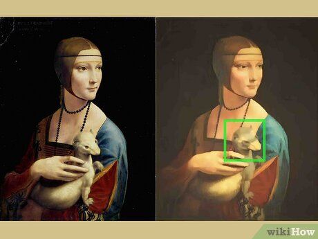 Tranh thanh thản Trong phiên bản giả của tranh thanh thản, người phụ nữ đang cầm một con chồn trắng và đen. Trong bức tranh thật, cô ấy đang cầm một con chồn hoàn toàn trắng.